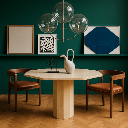Mid-Century Octagonal Marble Dining Table Italy 1980