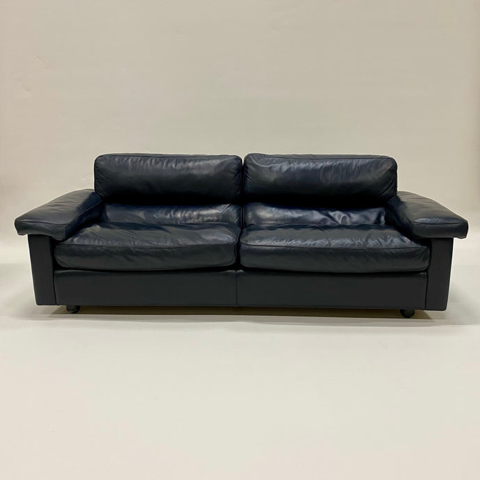 Dark Blue Leather 2-seater Sofa by Tito Agnoli for Poltrona Frau, Italy 1970