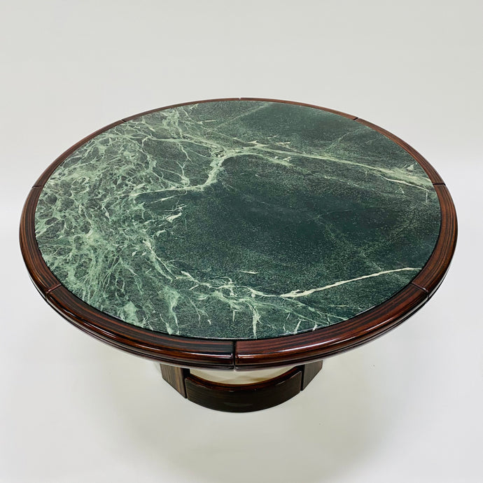 Round Green Marble and Rosewood Dining Table, France 1980