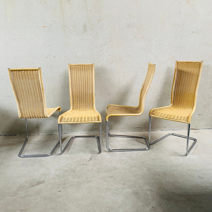 Set of 4 Rattan Dining Chairs by Dirk Van Sliedregt for Rohé Noordwolde, Netherlands 1960