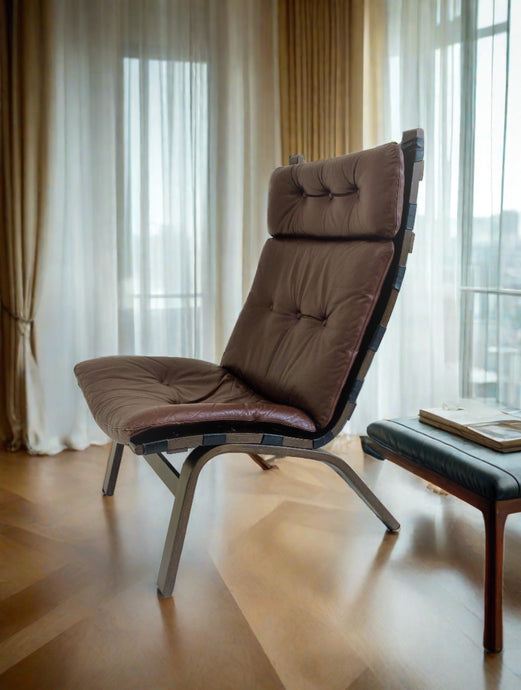 Danish Brown Leather Lounge Chair Farstrup, Denmark 1970