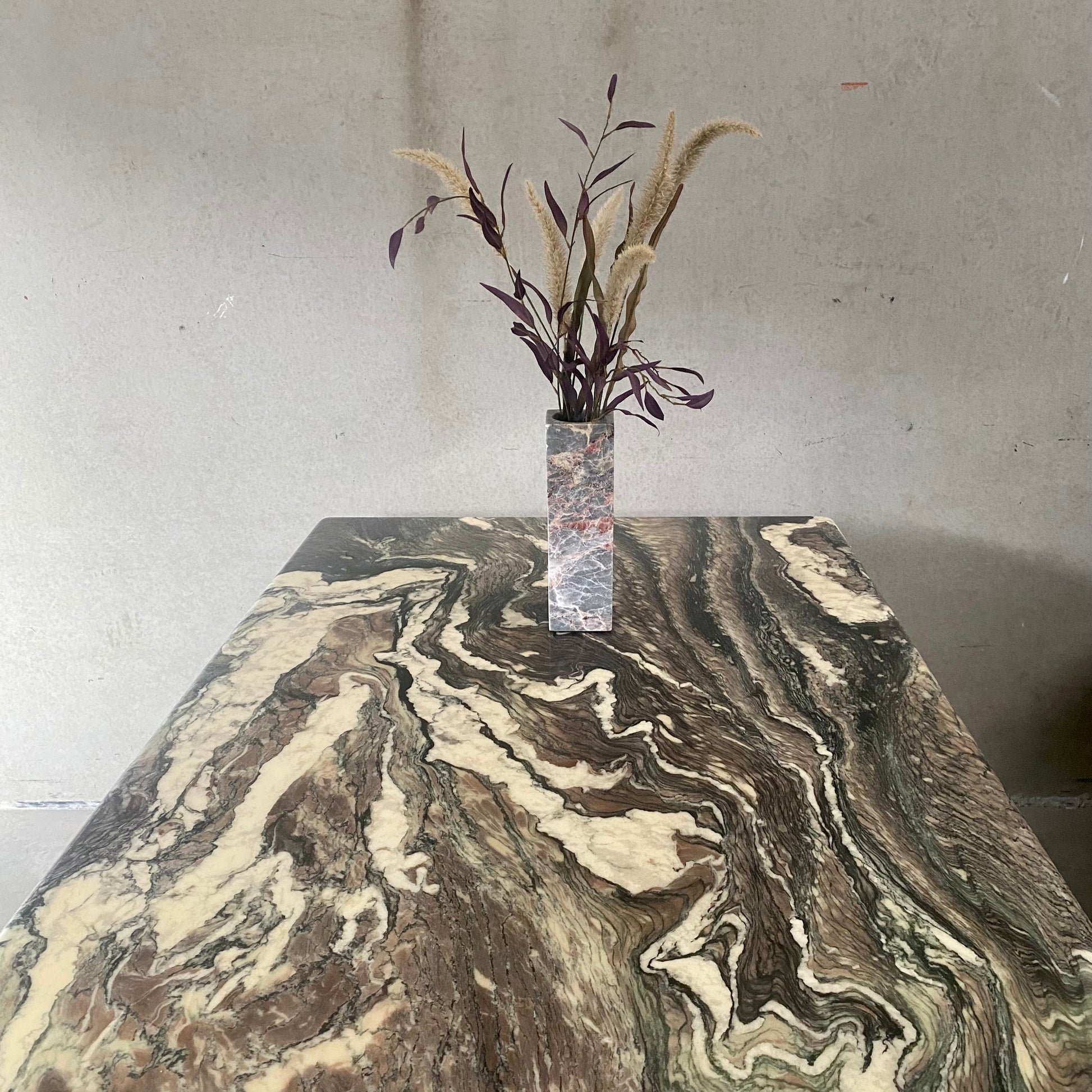 Florale Akzente : Frische Blumen oder Topfpflanzen verleihen Ihrem Essbereich einen Hauch von Natur und Frische. Wählen Sie Blüten, die mit den Farben des Marmors harmonieren.