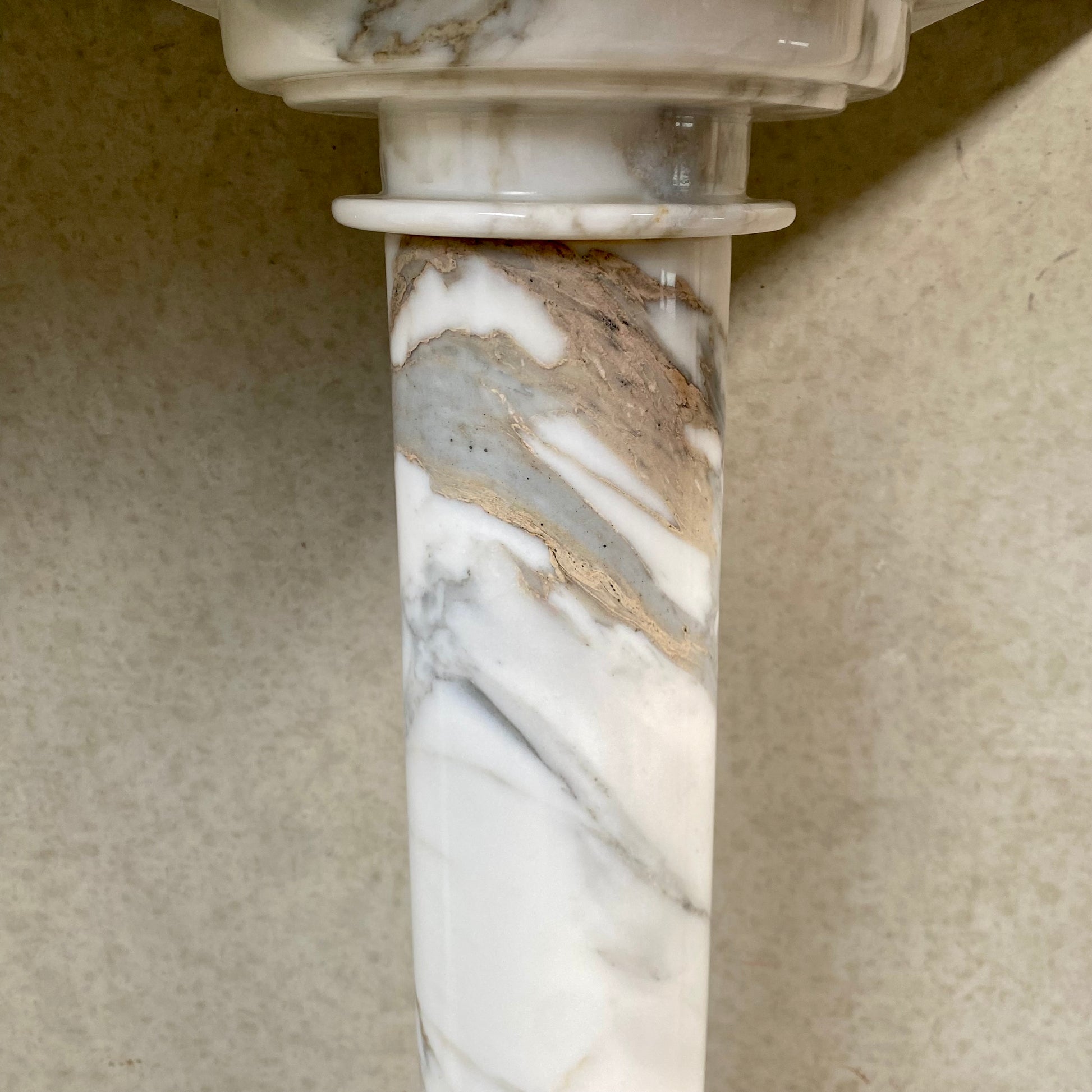 Sa structure en marbre blanc massif dégage une impression de luxe et de raffinement, tandis que les délicates bordures dans des tons de gris clair et de beige apportent une touche chaleureuse et un intérêt visuel certain. L'harmonie de ces nuances de marbre s'accorde parfaitement avec une grande variété de styles d'intérieur, du classique au contemporain, ce qui en fait un choix polyvalent pour votre maison.
