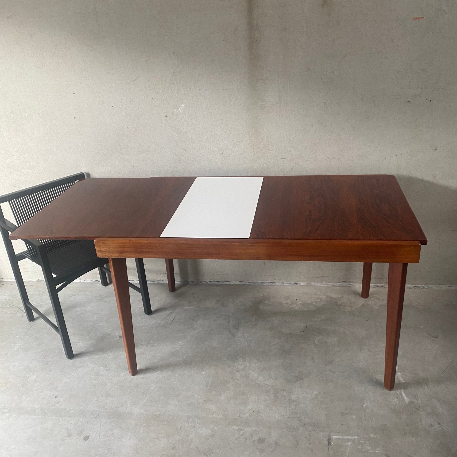 - Mécanisme innovant : La rallonge en formica est ingénieusement actionnée par des ressorts situés sous le plateau, garantissant un fonctionnement fluide et sans à-coups. Cette caractéristique apporte une touche de modernité et témoigne du génie du design danois.