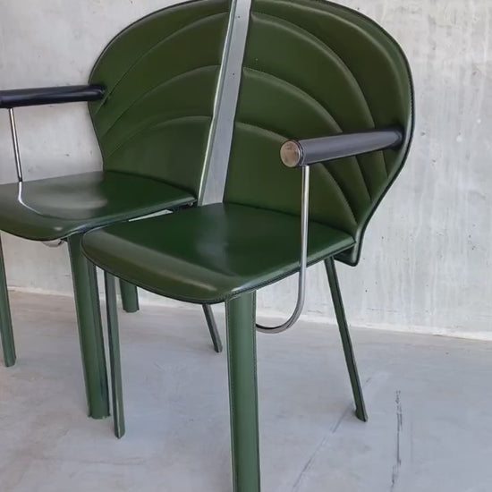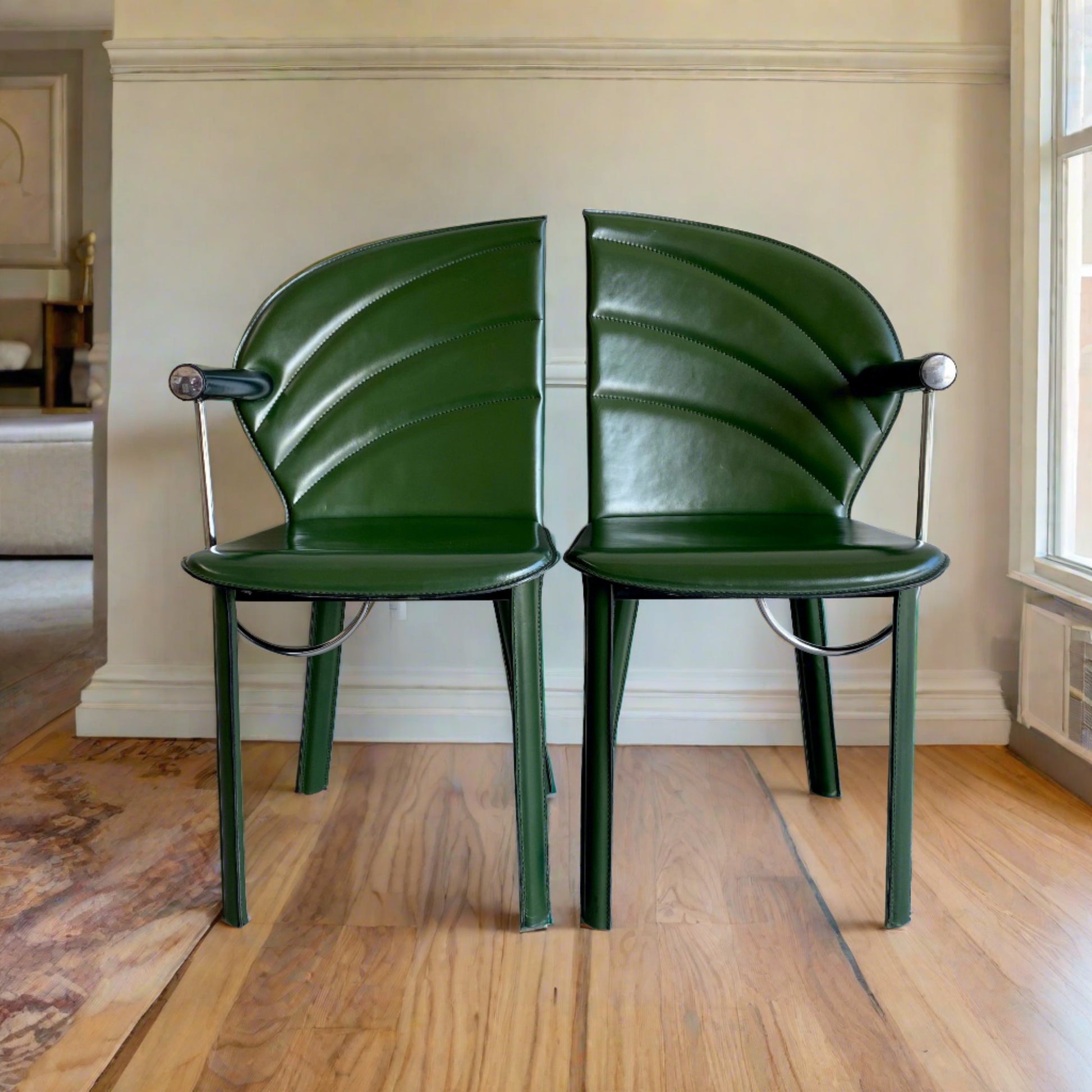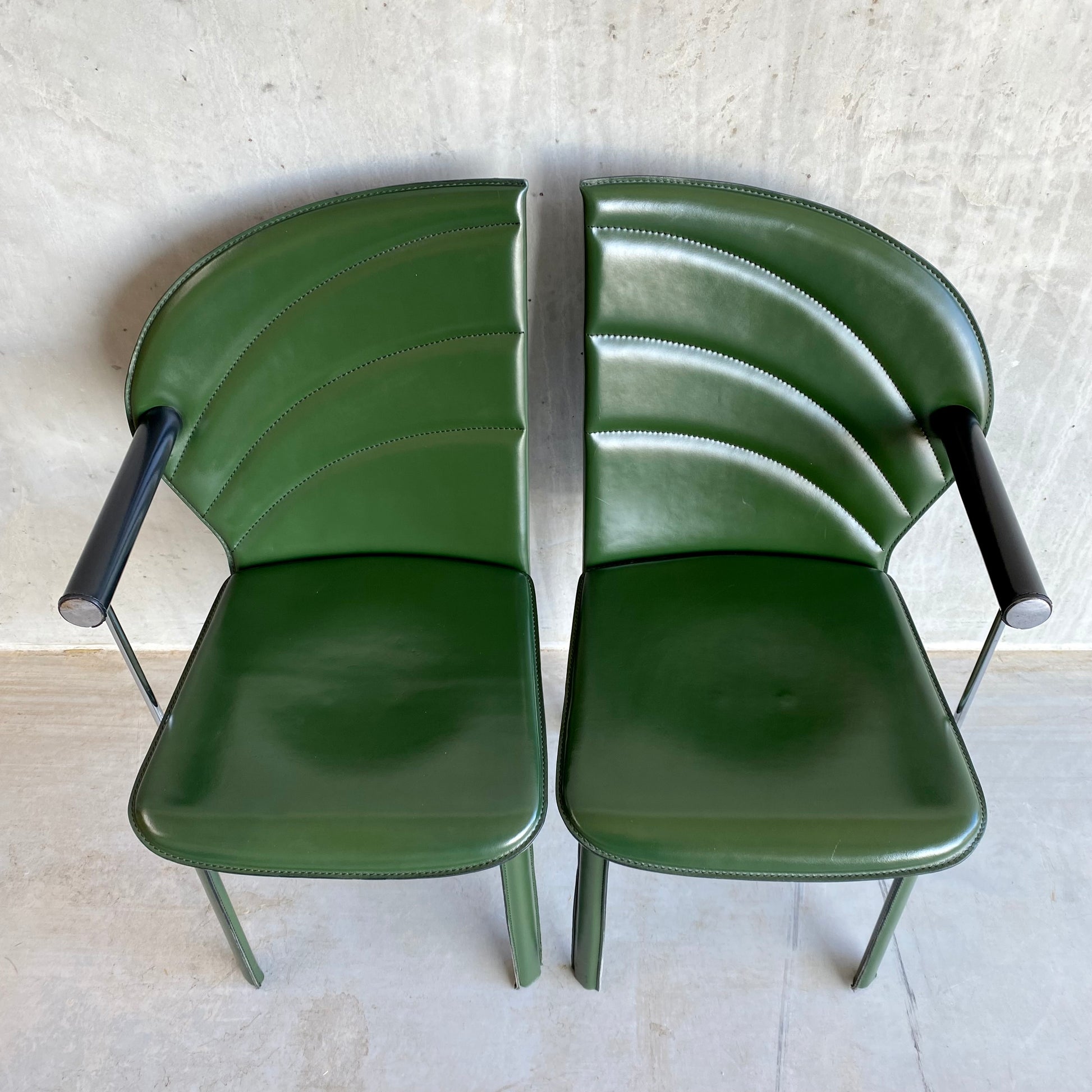 ENSEMBLE DE 2 FAUTEUILS EN CUIR VERT DE MARIO MORBIDELLI POUR NAOS, ITALIE 1980
