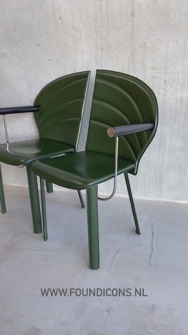 Ensemble de chaises en cuir vert avec accoudoirs en cuir noir.