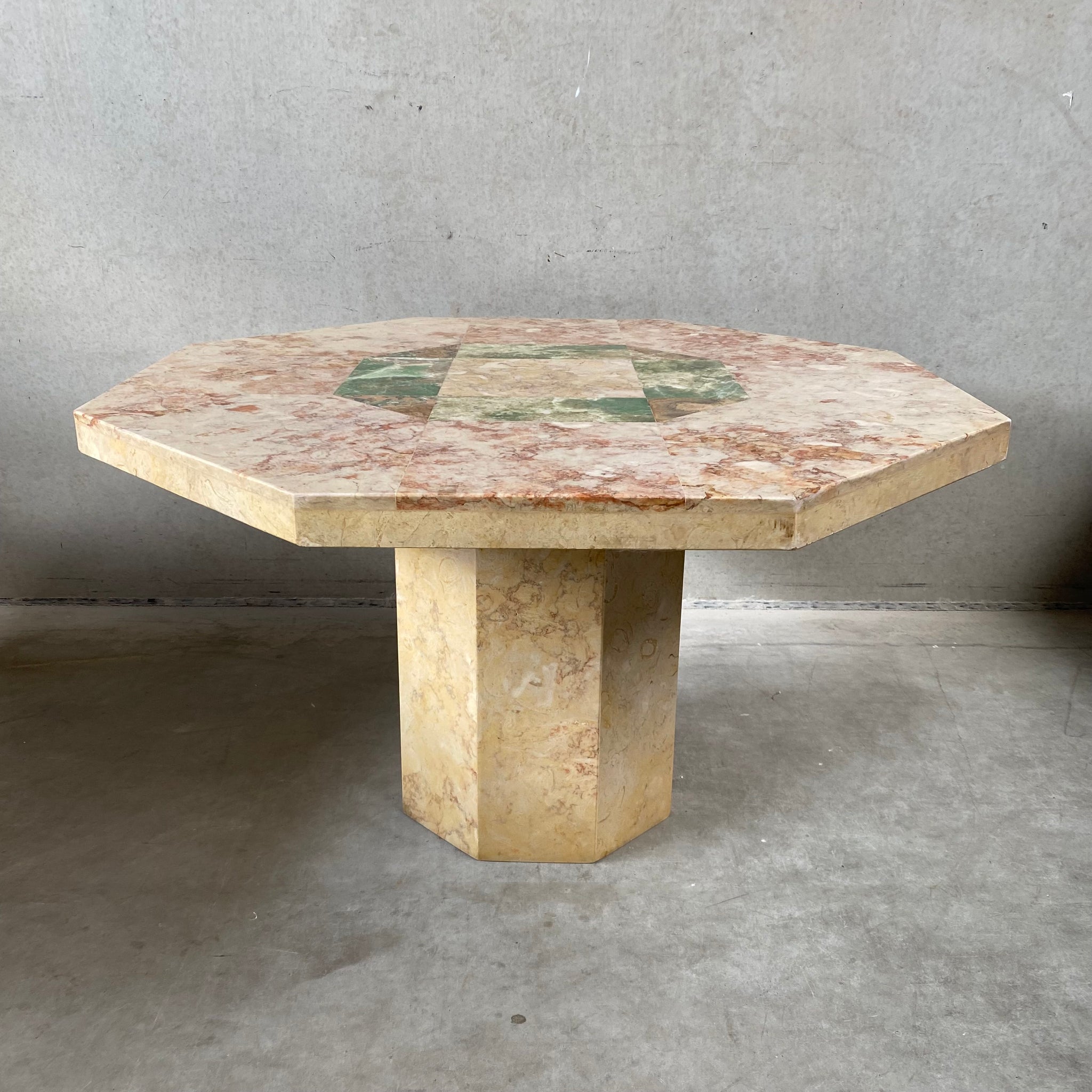Bring timeless character and understated luxury into your space with this vintage Italian marble dining table.